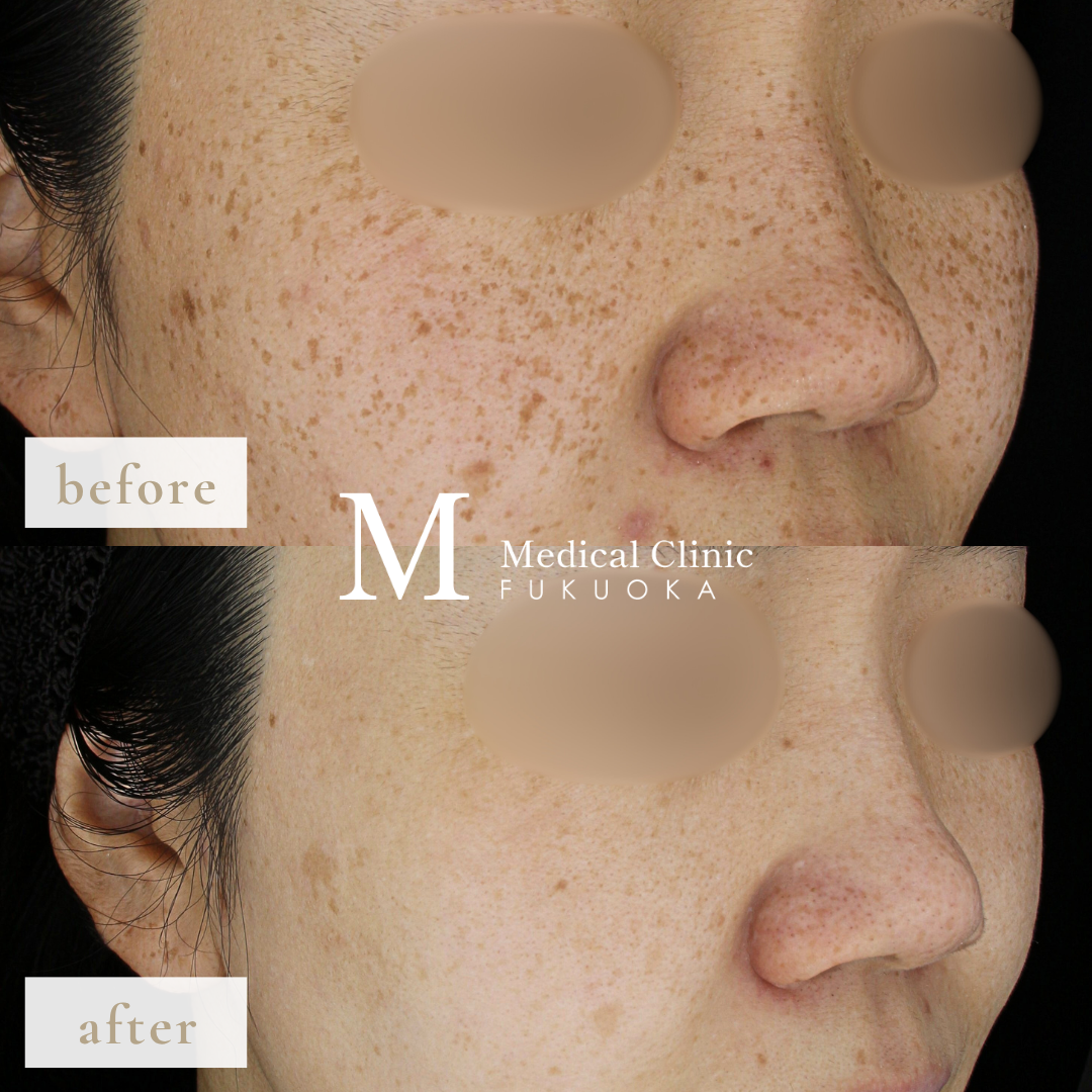 | 特徴 | ・濃いシミに高出力照射で効果大 ・照射後に薄いかさぶたができ、1〜2週間で剥がれる ・一度の施術で変化が実感しやすい |
