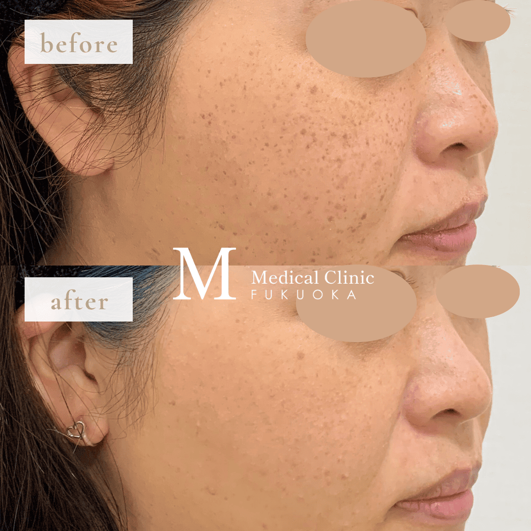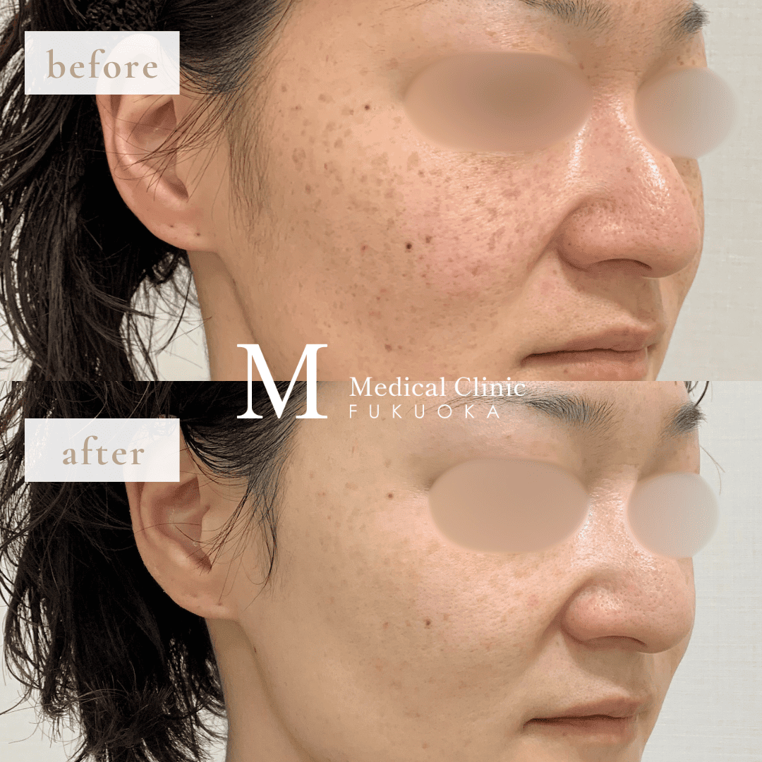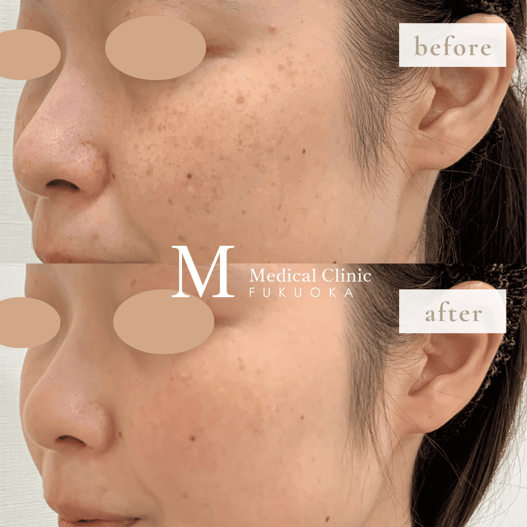 熱が周囲に広がることが抑えられ、周囲への影響が少ないため、従来のレーザーと比べて、レーザー照射後の合併症(炎症反応や色素沈着)が軽減され、少ないダウンタイムでも効果を実感できます。