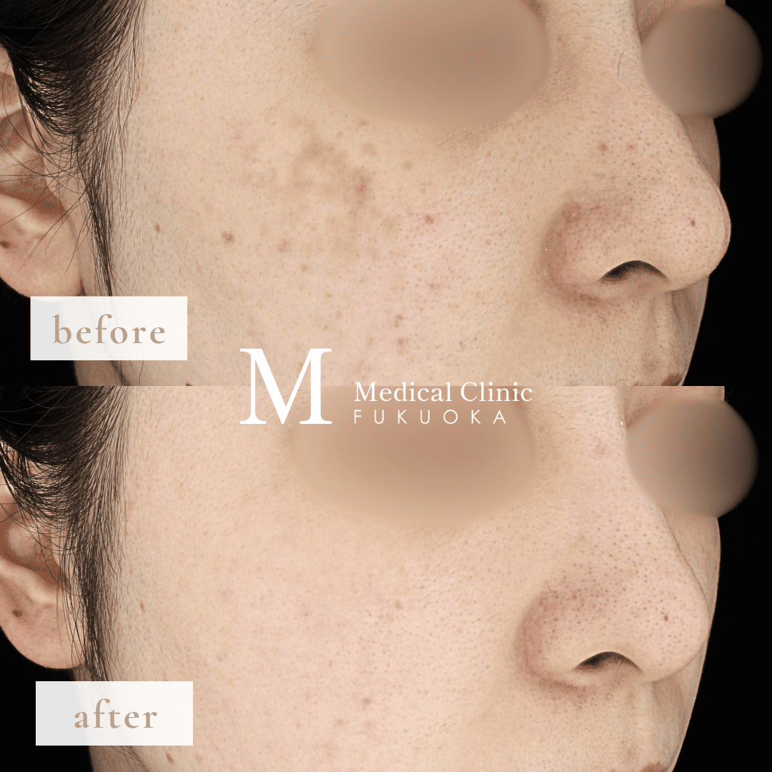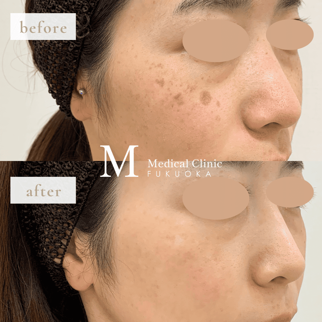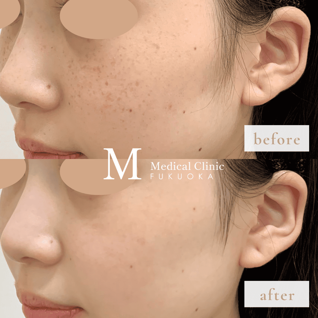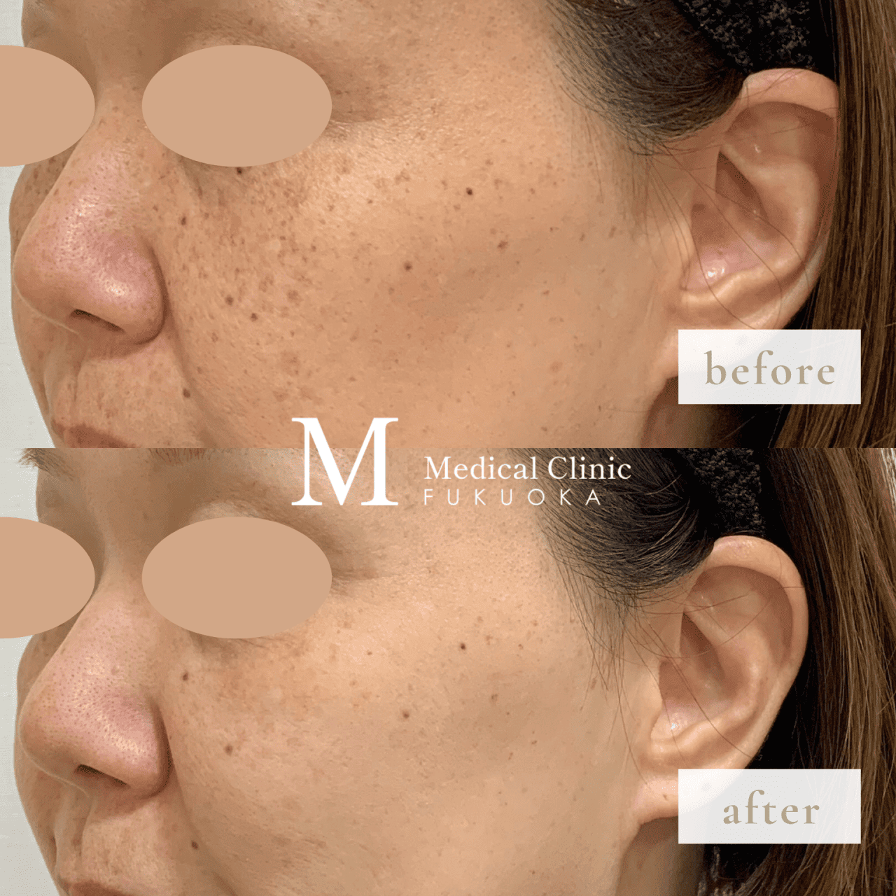 熱が周囲に広がることが抑えられ、周囲への影響が少ないため、従来のレーザーと比べて、レーザー照射後の合併症(炎症反応や色素沈着)が軽減され、少ないダウンタイムでも効果を実感できます。