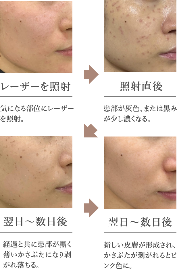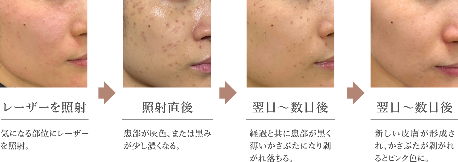 ・照射後に薄いかさぶたができ、1〜2週間で剥がれる