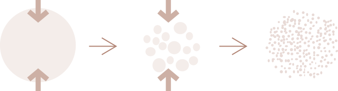 衝撃波によって、非常に微細な粒子まで粉砕されるため、代謝処理がスムーズに行われやすいです。