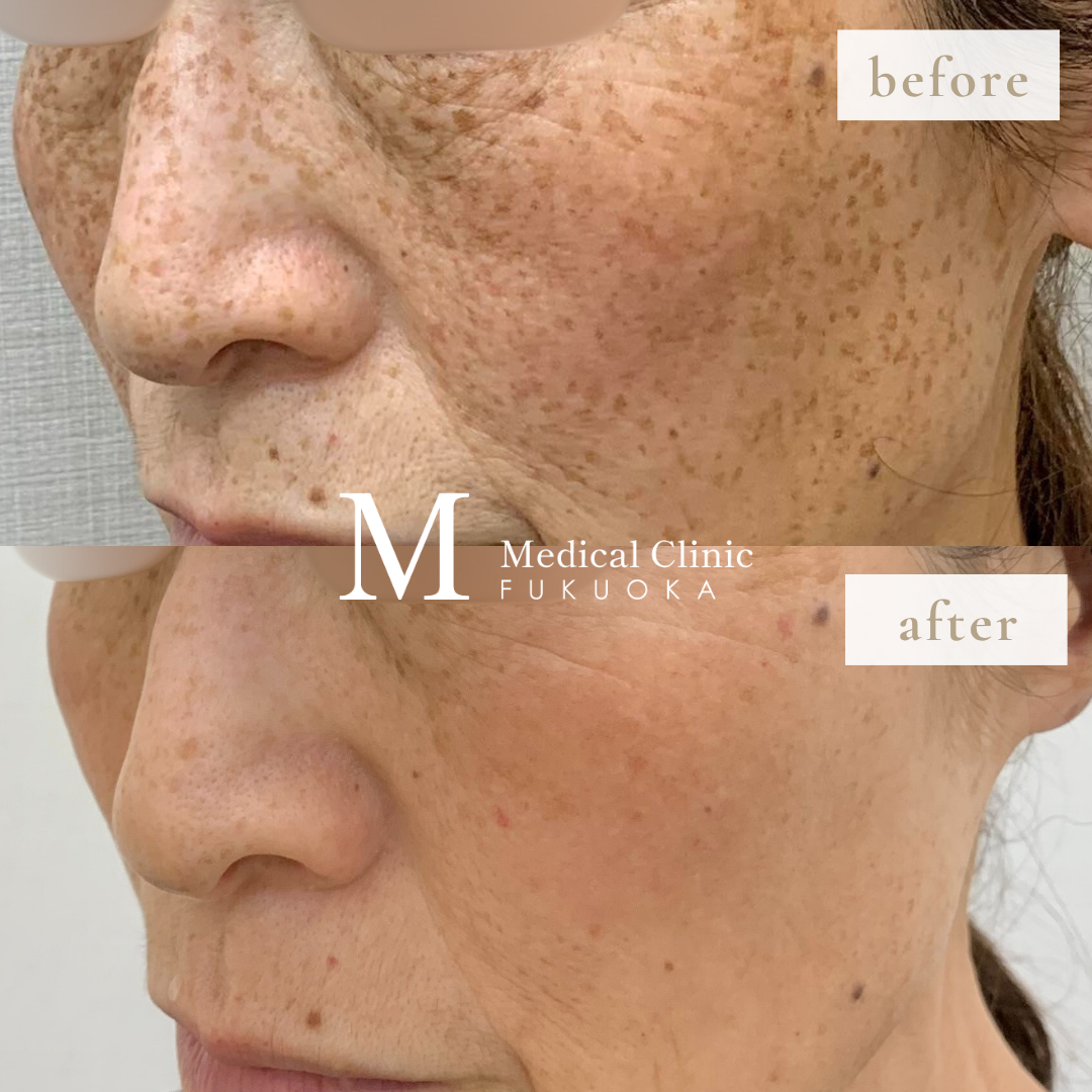 | 特徴 | ・濃いシミに高出力照射で効果大 ・照射後に薄いかさぶたができ、1〜2週間で剥がれる ・一度の施術で変化が実感しやすい |